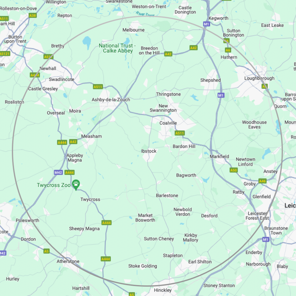 We deliver to any location within 14 miles of our Ibstock retail store. This includes: