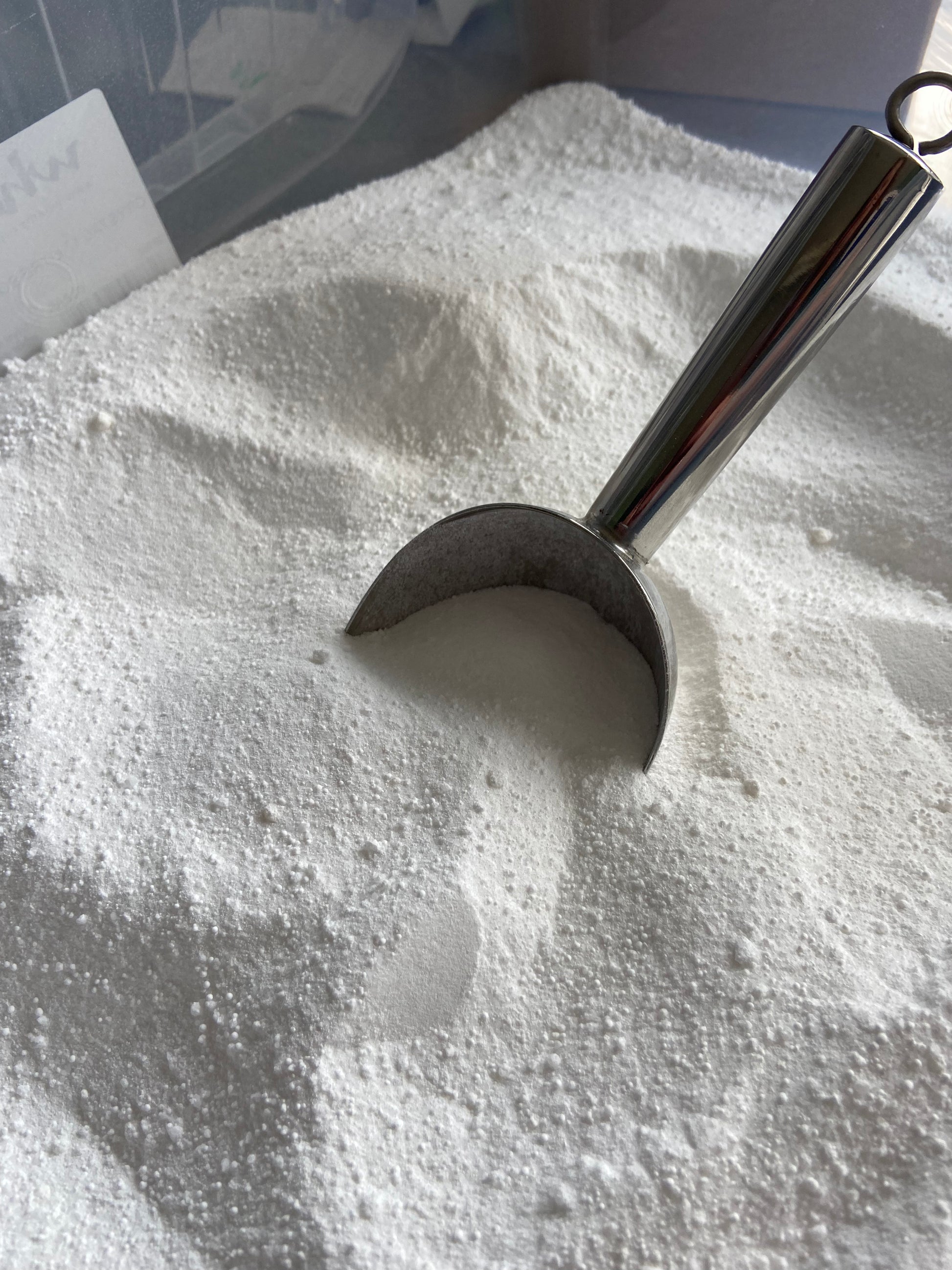 Remove food from your dishes and place a desert spoon (10 grams) of Dishwasher Powder in the machine’s dispenser.