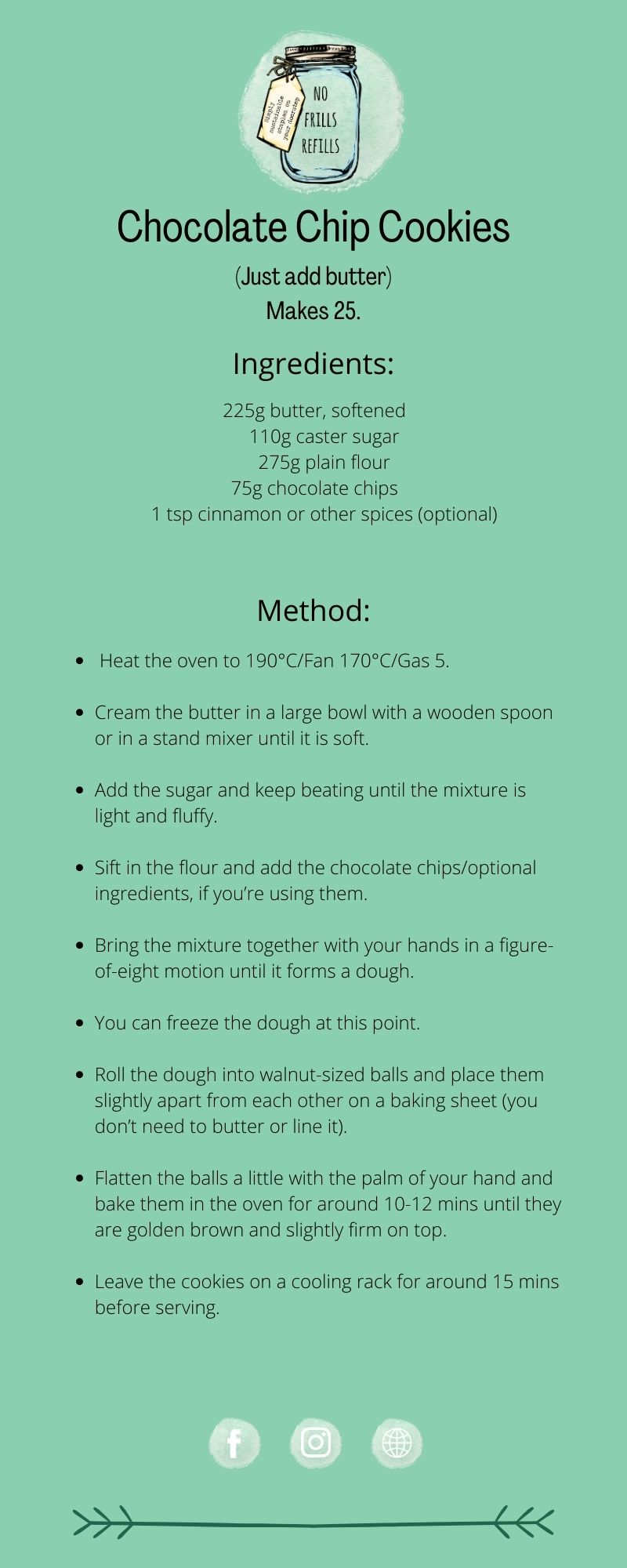Please note: in line with No Frills’ ethos, you won’t receive a printed copy of the recipe details; so feel free to take a screenshot, refer back here or let me know if you need a copy emailed over.