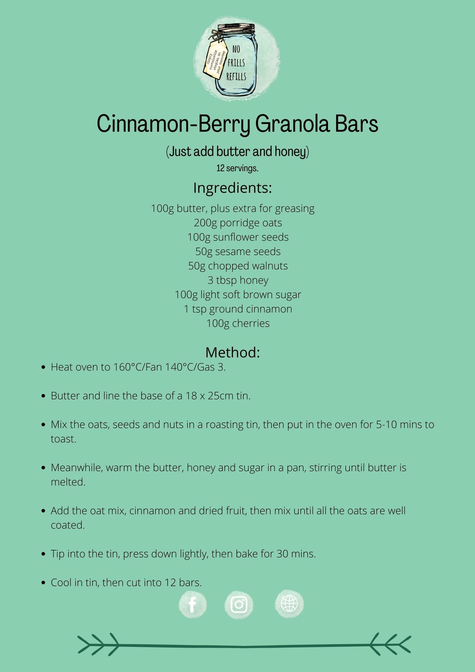 No Frills Cinnamon-Berry Granola Bar Kit.